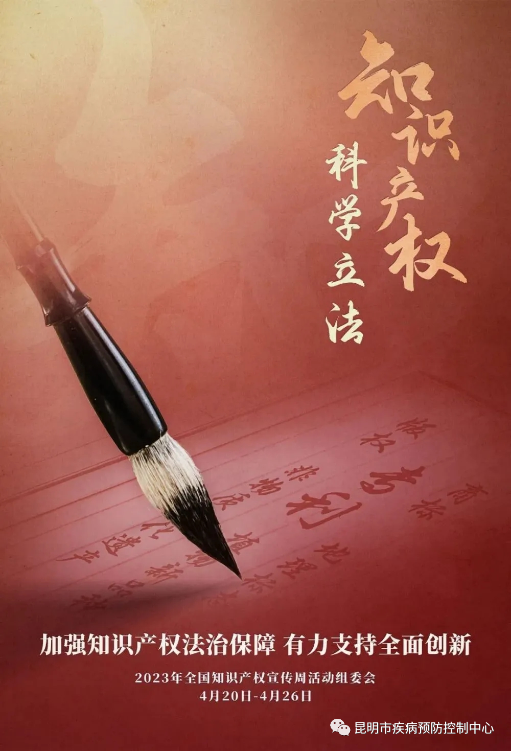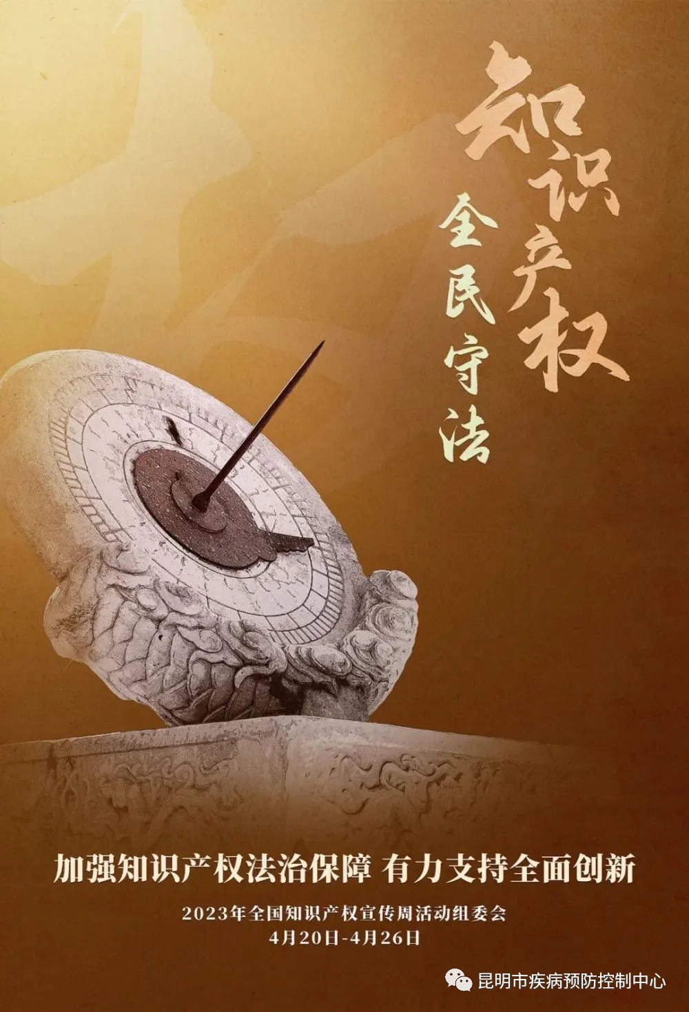 根据昆明市卫生健康委员会通知,为深入贯彻习近平总书记关于知识产权工作的重要指示论述精神,昆明市疾病预防控制中心于2023年4月20日-26日组织开展知识产权宣传周活动。