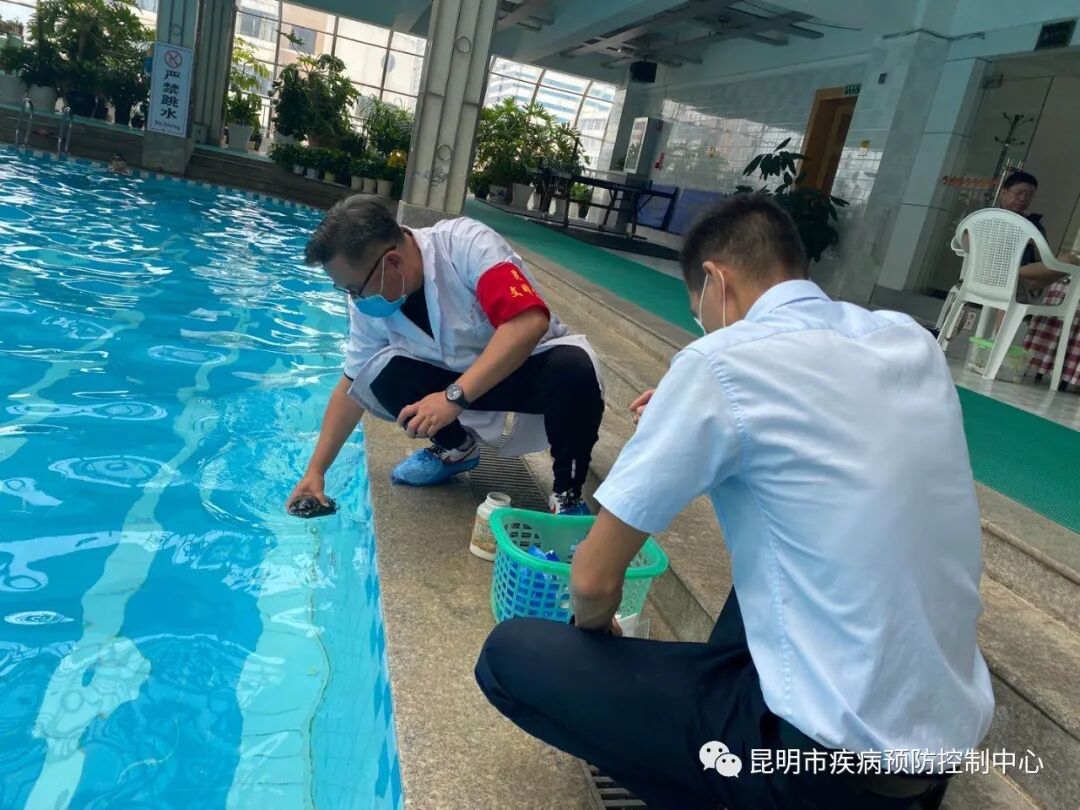 为加强游泳场馆卫生管理,保障群众健康权益,昆明市疾病预防控制中心于4月17日至19日,对主城区内正常营业的游泳场馆开展水质卫生监测工作,共采集70家155件水样。监测依据《公共场所卫生指标及限值要求》(GB37488-2019)相关要求,检测项目为细菌总数、大肠菌群、游泳池水浑浊度、游离性余氯、pH值、尿素共6项。