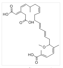 米酵菌酸化学名为:3-羧甲基-17-甲氧基-6,18,21-三甲基-廿二碳-2,4,8,12,14,18,20-七烯二酸,常用检测方法为超高效液相色谱串联质谱法。